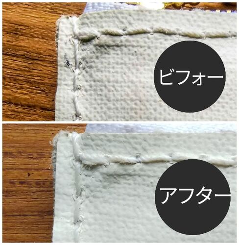 今回は『商品のお手入れ方法』についてです。 数ヶ月の間、試しに使っていた試作品の手のひらサイズのお財布ですが、 私が鞄の中に鍵の束と一緒に放り込んでいて… 金属の汚れなどめだってきました。 早急に、キーカバーを製作しなければ…と思いながら どう汚…